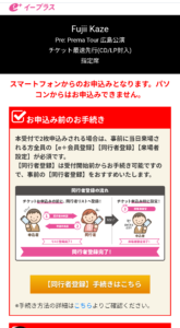 ここまで来たら、ライブチケットの申し込み画面へといきますよ。