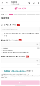 ライブチケットの購入には事前にe +(イープラス)の会員登録が必要となります。無料ですのでご安心ください!
