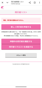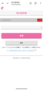 それから、同行者がいる場合は申込者とは別にe+(イープラス)の登録が必要となります。